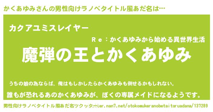 | ヒーロー風カッコイイあだ名 | 『仮面カクダー』『ネオカクアユミ』 |
