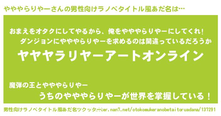 | 伝説のあだ名 | 『封印されし傭兵やややらりやー』 |