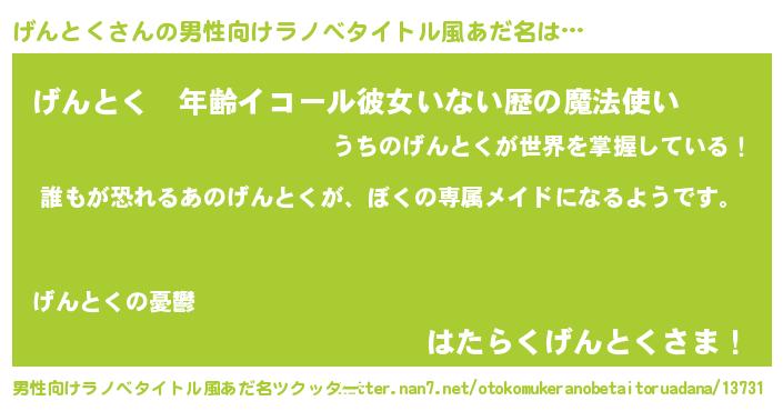 | ヘコむあだ名 | 『げんとく(遠い目)』『げんもー』 |