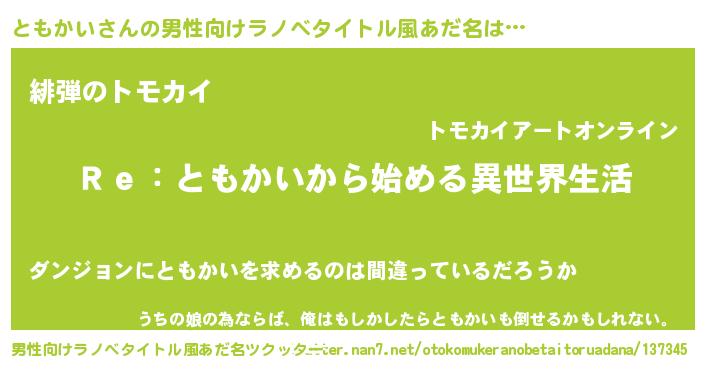 | 意味不明あだ名 | 『自称ともかい』『ともかいフォーエバー』 |