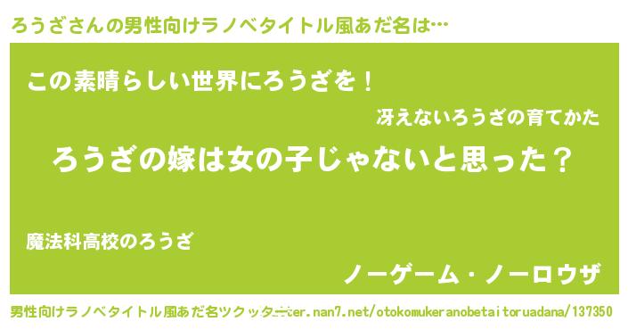| ヒーロー風カッコイイあだ名 | 『天弓騎士ロウ』『仮面ロウダー』 |