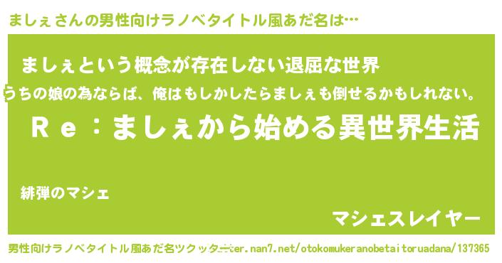 | 女子向けラノベタイトル風あだ名 | 『ましぇストレイドッグス』 |