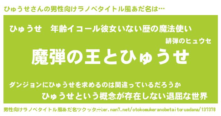 | 意味不明あだ名 | 『住所不定無職ひゅうせ(98歳)』 |