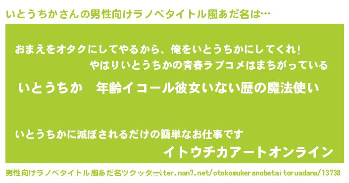 | ヒーロー風カッコイイあだ名 | 『天空の使者いとうちか』『天弓騎士イト』 |