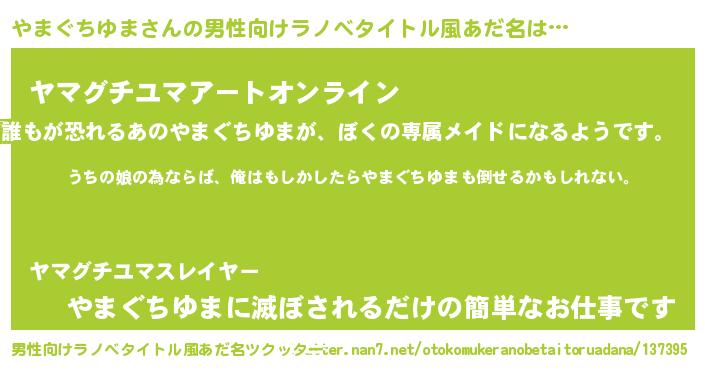 | 女子向けラノベタイトル風あだ名 | 『やまぐちゆま伯爵の花嫁』 |