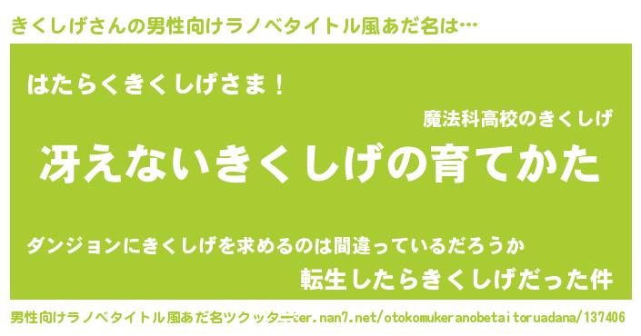 | 胡散臭い通販商品みたいなあだ名 | 『テレビで話題のアガリクス…その名も「きくしげ」』 |