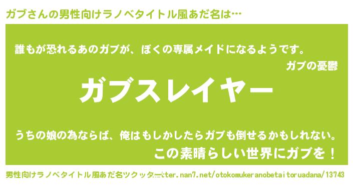 | ヘコむあだ名 | 『ガブ(笑)』『ガブもー』『牛乳』 |