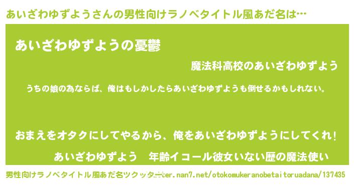 | 女子向けラノベタイトル風あだ名 | 『あいざわゆずようの婚約者』 |