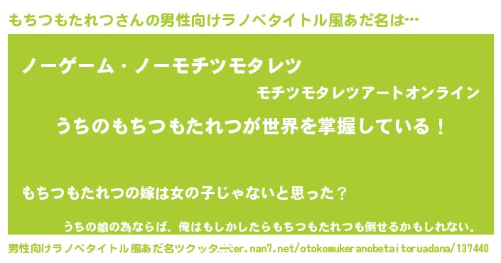 | 女子向けラノベタイトル風あだ名 | 『男装もちつもたれつの憂鬱な任務』 |