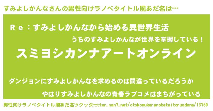 | 胡散臭い通販商品みたいなあだ名 | 『億万長者になれる霊験あらたかなお札…その名も「すみよしかんな」』 |