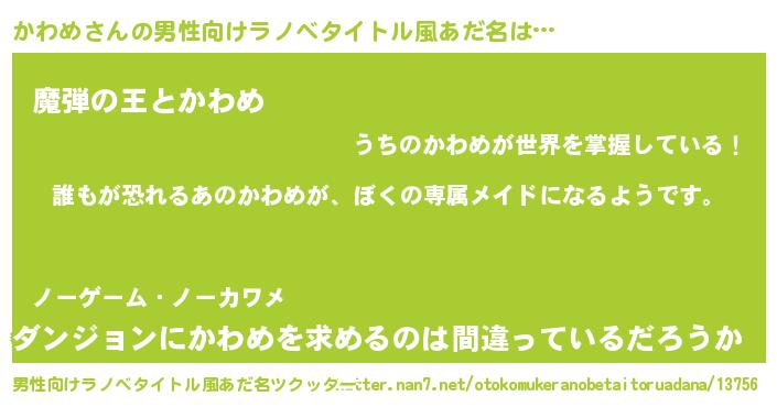 | 女子向けラノベタイトル風あだ名 | 『異世界でカフェかわめを開店しました。』 |