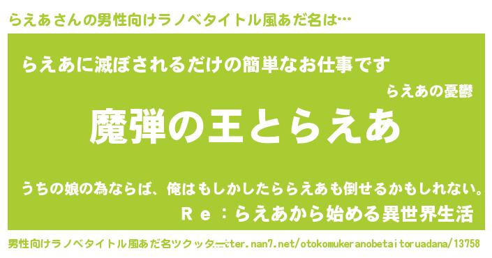 | 意味不明あだ名 | 『住所不定無職らえあ(3歳)』『自称らえあ』 |