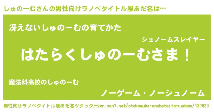 | ヒーロー風カッコイイあだ名 | 『愛の使者しゅのーむ』『黄金騎士シュ』 |