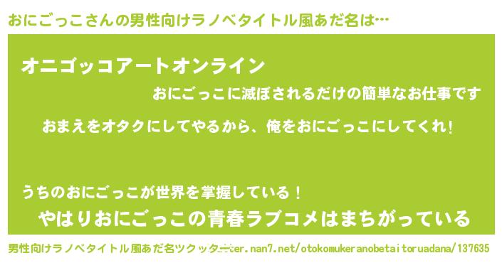 | ヘコむあだ名 | 『おにもー』『なまこ酢』『おにっ子』 |
