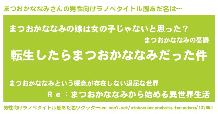 | 女子向けラノベタイトル風あだ名 | 『まつおかななみの玉の輿計画!』 |