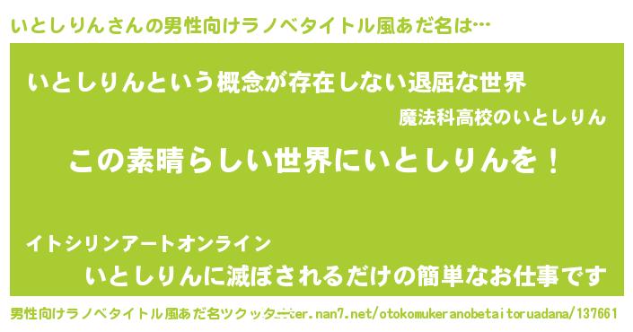 | ヒーロー風カッコイイあだ名 | 『仮面イトダー』『ネオイトシリン』 |