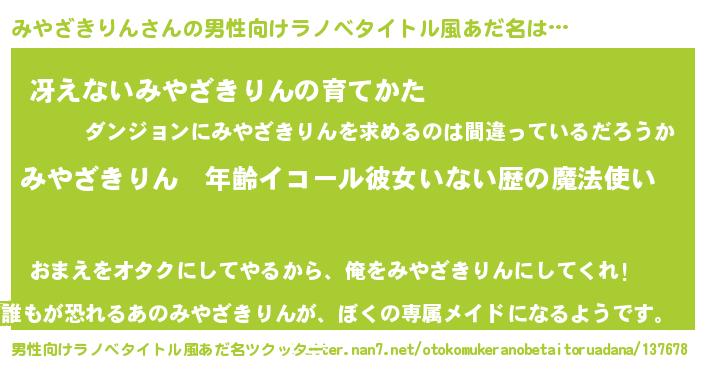 | ヒーロー風カッコイイあだ名 | 『ネオミヤザキリン』『幻影騎士ミヤ』 |