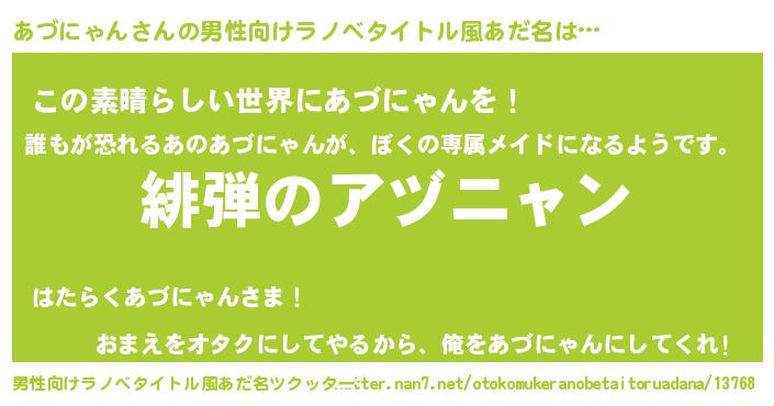 | 意味不明あだ名 | 『住所不定無職あづにゃん(9歳)』 |