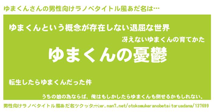 | ヘコむあだ名 | 『ゆまにゅー』『ゆまくん(笑)』 |
