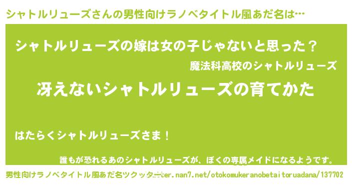 | 女子向けラノベタイトル風あだ名 | 『男装シャトルリューズの憂鬱な任務』 |