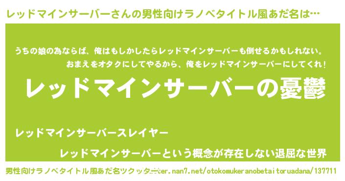 レッドマインサーバーさんの男性向けラノベタイトル風あだ名をツクッター!