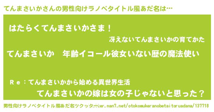 | 女子向けラノベタイトル風あだ名 | 『てんまさいかの玉の輿計画!』 |