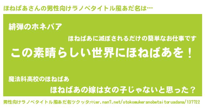 | 意味不明あだ名 | 『住所不定無職ほねばあ(4歳)』 |