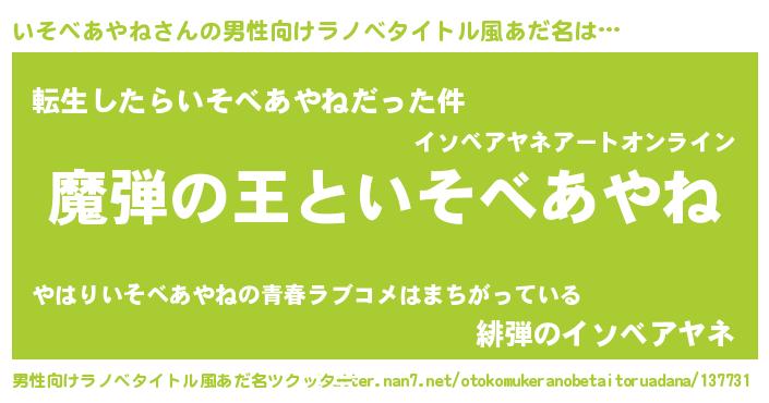 | 欧米人風あだ名 | 『ダレノガレいそべあやね』 |