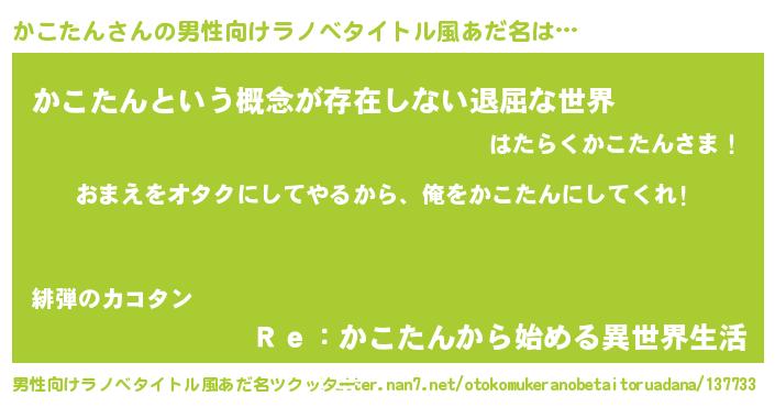 | 女子向けラノベタイトル風あだ名 | 『かこたん夫妻のなれそめ』 |