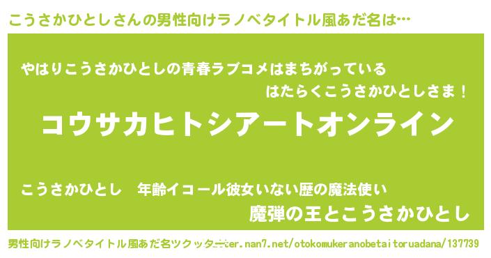 | ヒーロー風カッコイイあだ名 | 『スーパーコウサカヒトシ』 |