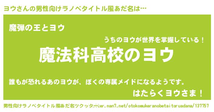 | ヒーロー風カッコイイあだ名 | 『ウルトラ戦士ヨウ』『仮面ヨウダー』 |