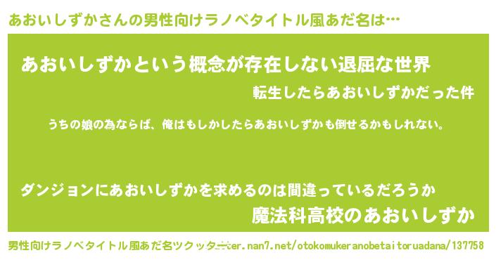 | ファンタジー風あだ名 | 『エターナルアオイシズカー』 |
