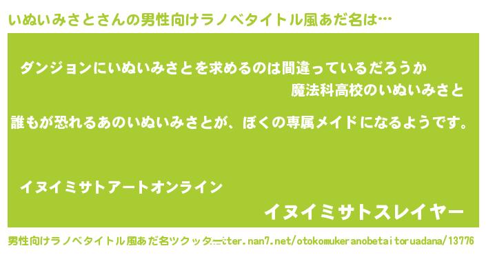 いぬいみさとさんの男性向けラノベタイトル風あだ名をツクッター!