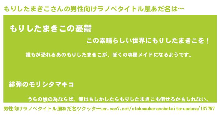 | 胡散臭い通販商品みたいなあだ名 | 『前代未聞の水素水…その名も「もりしたまきこ」』 |
