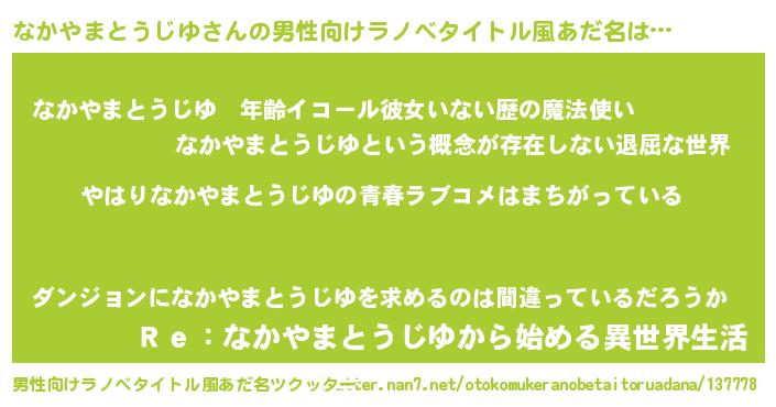 | ファンタジー風あだ名 | 『エターナルナカヤマトウジユー』 |