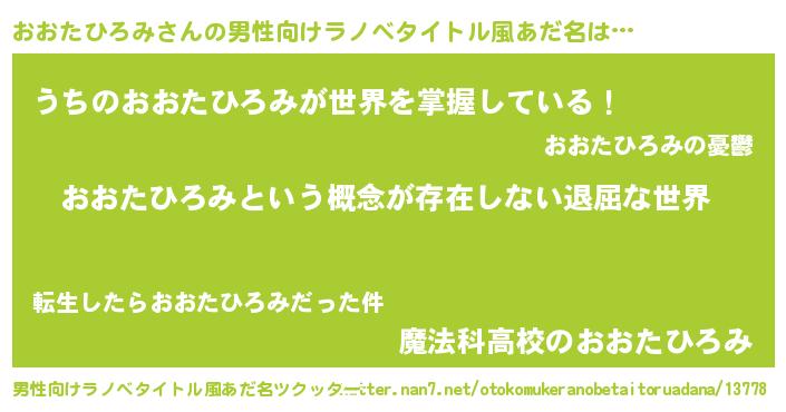 | 女子向けラノベタイトル風あだ名 | 『異世界で失敗しない100のおおたひろみ』 |