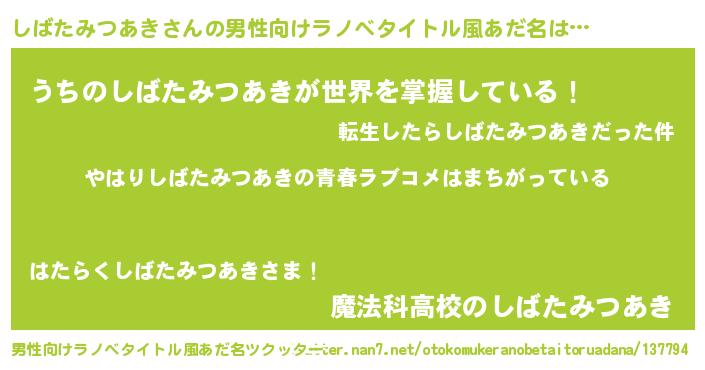 | ファンタジー風あだ名 | 『エターナルシバタミツアキー』 |