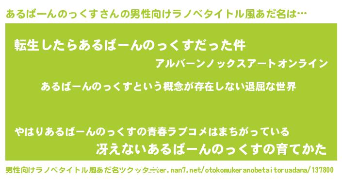 | 意味不明あだ名 | 『永久保存あるばーんのっくす』 |