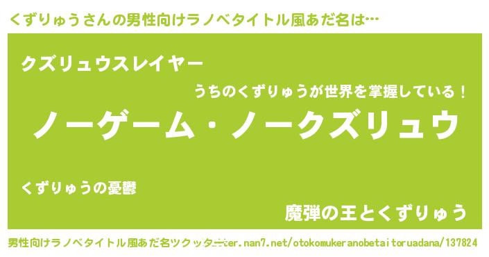| 女子向けラノベタイトル風あだ名 | 『死神くずりゅうの再婚』 |