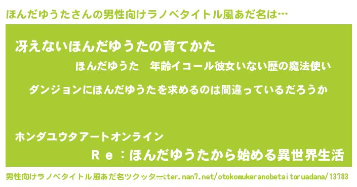 | ポケモン風あだ名 | 『ヒホンダユウタ』『メロホッン』 |