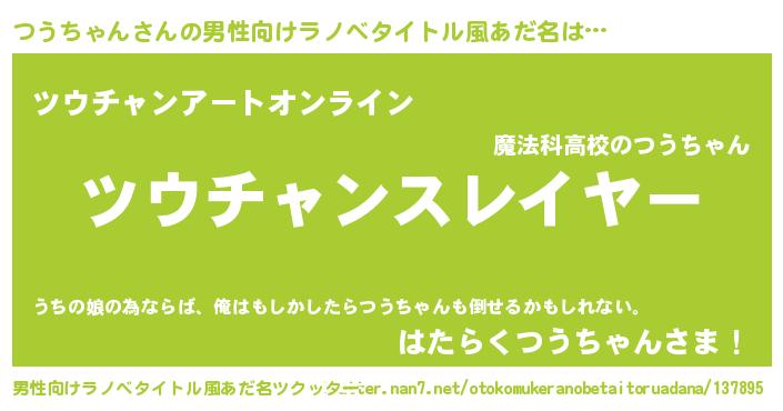 | ヒーロー風カッコイイあだ名 | 『スーパーツウチャン』『魔戒騎士ツウ』 |
