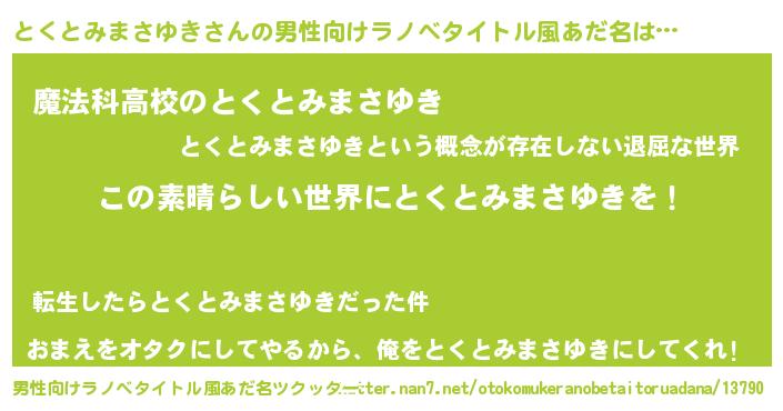 | 胡散臭い通販商品みたいなあだ名 | 『世界中を虜にした世界で10本だけ現存している希少なブランデー…その名も「とくとみまさゆき」』 |