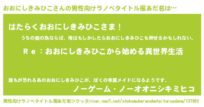 | 肩書あだ名 | 『おおにしきみひこ閣下』 |