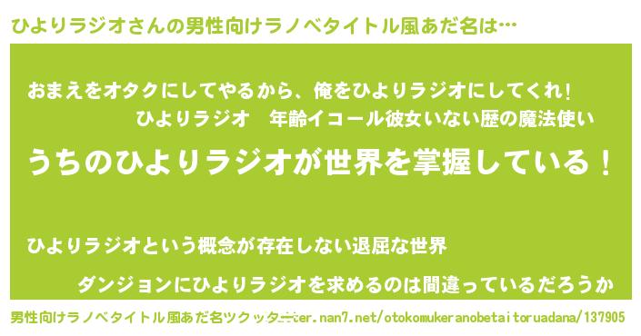 | ヘコむあだ名 | 『ひよを』『ひよりラジオ(苦笑)』 |
