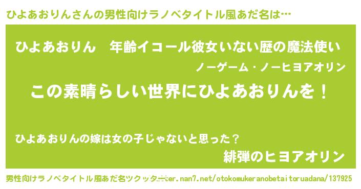 女子向けラノベタイトル風あだ名 | 『悪役ひよあおりんに転生したようですが、知った事ではありません』 |