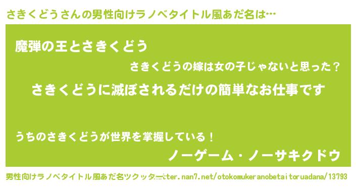 | 意味不明あだ名 | 『住所不定無職さきくどう(53歳)』 |