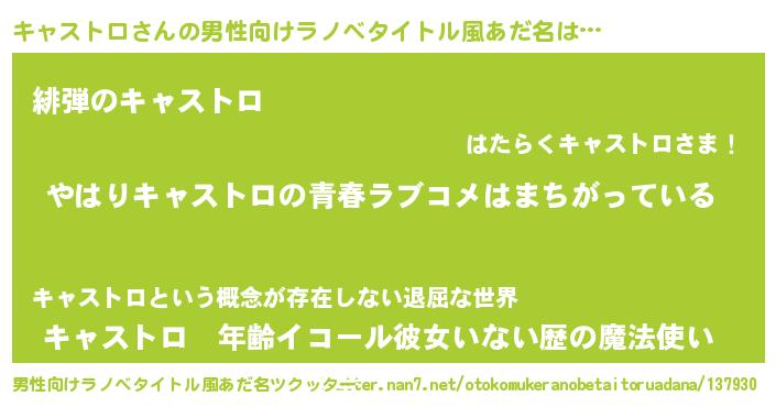| 女子向けラノベタイトル風あだ名 | 『キャストロの雑貨屋さん』 |