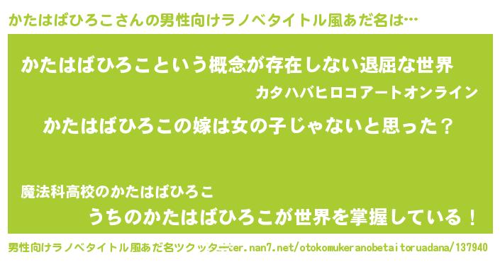 | ヒーロー風カッコイイあだ名 | 『天弓騎士カタ』『ネオカタハバヒロコ』 |
