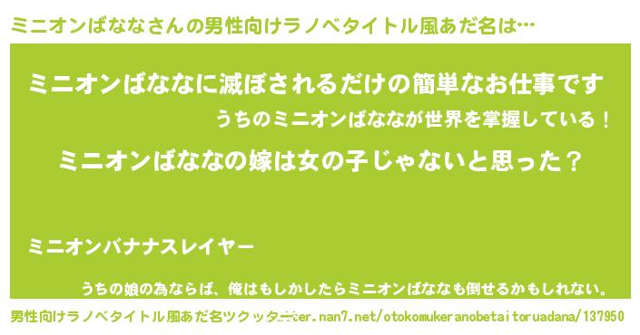 | 胡散臭い通販商品みたいなあだ名 | 『全米が絶賛したサプリメント…その名も「ミニオンばなな」』 |