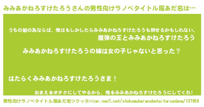 | 女子向けラノベタイトル風あだ名 | 『みみあかねろすけたろう様がみてる』 |